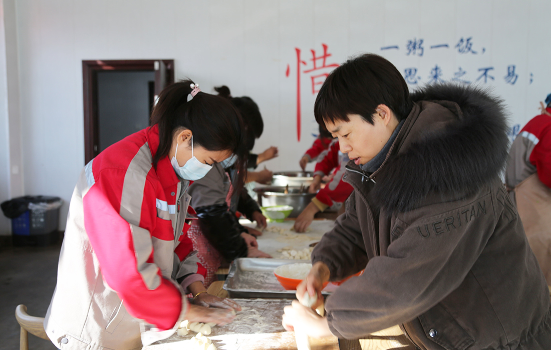 其樂(lè)融融包餃子 和諧攜手度冬至