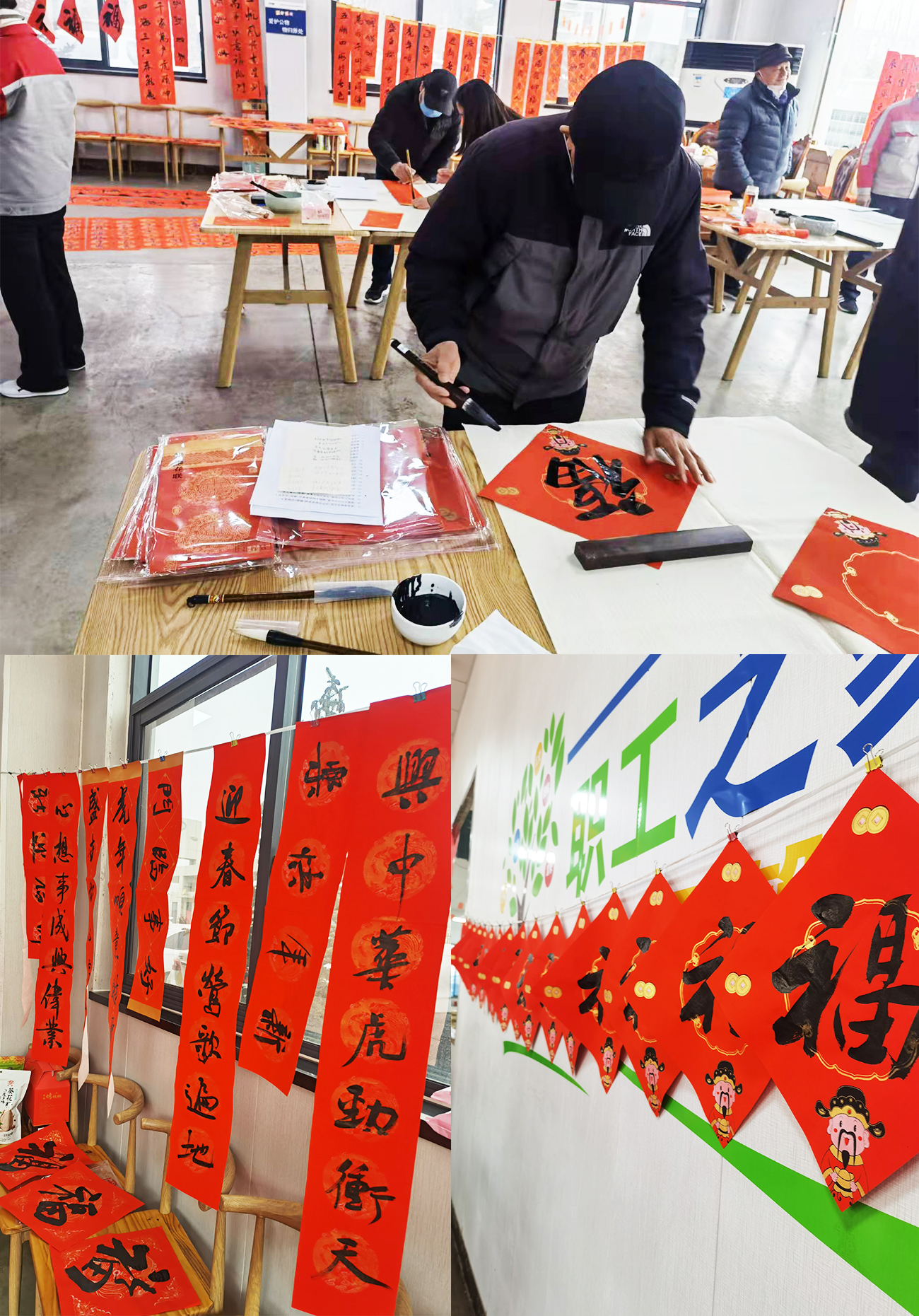 2022年1月12日上午10:00—11:30我公司在食堂大廳舉行“天意、天元星迎新春送春聯(lián)活動”,區(qū)文聯(lián)主席及市、區(qū)文聯(lián)書法家蒞臨我公司現(xiàn)場手寫春聯(lián)并贈送員工,活動現(xiàn)場氣氛熱烈,書法家們將新年的祝福寫進(jìn)了一幅幅春聯(lián)和福字之中,書法家們的作品也受到了在場員工的連連稱贊!紅色喜慶的一幅幅春聯(lián)寓意著新的一年,紅紅火火!