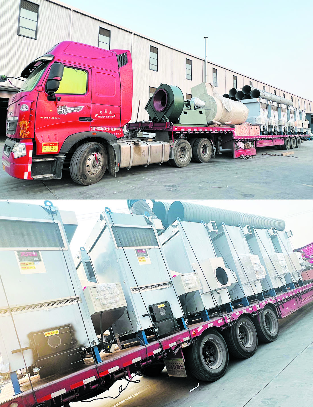 遼寧省錦州市新款生物顆粒熱風爐一體機(120型4右8左)12臺,30kw風機,水幕除塵器發貨